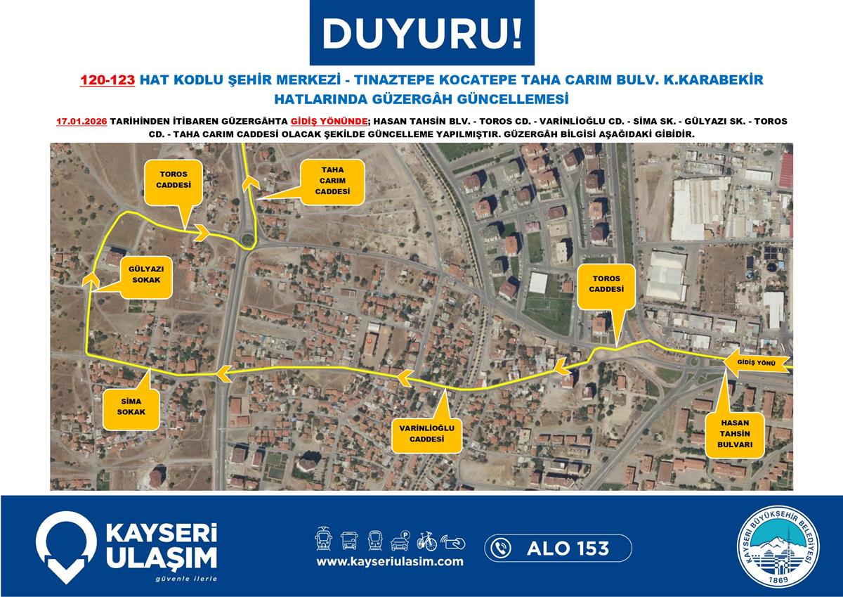 ŞEHİR MERKEZİ - TINAZTEPE KOCATEPE TAHA CARIM BULV. K.KARABEKİR HATLARINDA GÜZERGÂH GÜNCELLEMESİ